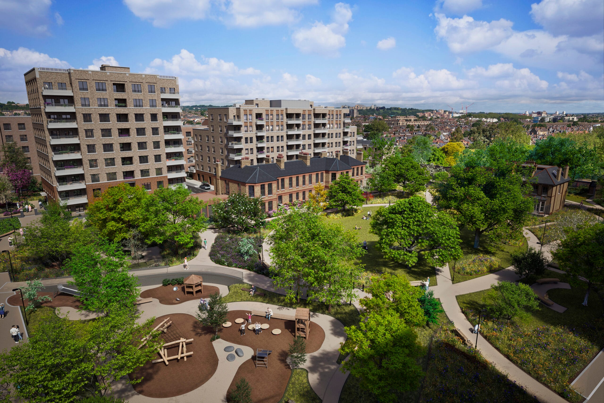 North Gate Park, North London’daki Haringey bölgesinde, tarihî Victoria dönemi yapılarıyla uyum içinde yeniden canlandırılmış yeni bir yaşam alanı sunuyor. Proje, toplamda yaklaşık 995 modern daire ve townhouse sunuyor; bunların %60’ı Shared Ownership ya da London Living Rent gibi uygun maliyetli seçeneklerle erişilebilir durumda. Tüm konutlar, 1920’lerden kalma Mulberry Gardens adlı üç dönümlük peyzajlı bahçenin etrafında şekillendirilmiş; özel balkon, teras veya bahçeye sahip olup her biri geniş iç mekanlarla doğal ışığı içeri davet ediyor.